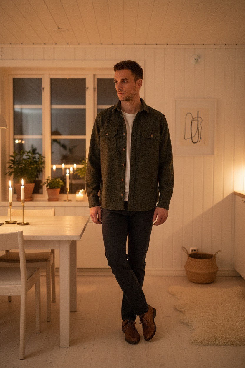 The Wool ShirtJac combines durability with refined comfort through its premium 80% wool and 20% nylon blend. Wool provides natural temperature regulation and breathability, while the nylon reinforcement enhances resilience and shape retention. This composition creates a versatile layer that performs across seasons—offering warmth without bulk in cooler months and breathable comfort during transitional weather. The fabric's inherent moisture-wicking properties keep you dry, while the blend resists pilling and maintains its structured appearance through regular wear. An ideal choice for those seeking a dependable, long-lasting shirt jacket that bridges casual and polished styling.